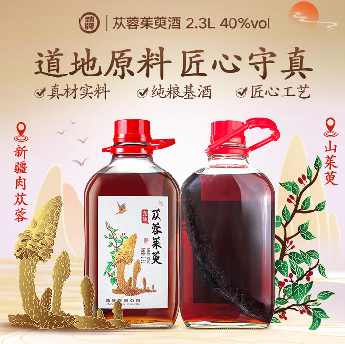 劲牌特色原料浸泡酒高度酒苁蓉茱萸石斛枸杞酒节日送礼桶装酒厂直营 40度 2.3L 苁蓉茱萸酒